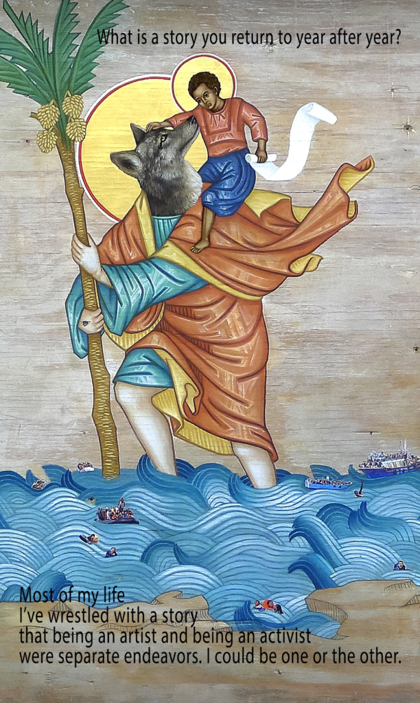- The main figure is represented as many selves, or many aspects of itself.This idea first came to me through 14th century paintings of hagiographies where the figure of the saint appears many times in the painting charting his journey in the landscape or on a pilgrimage. I have used this idea of multiples of ‘the Self’ to express psychodynamic realities of the human figure.