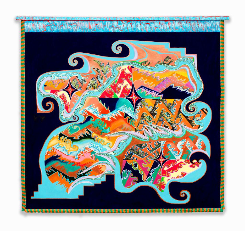 Lisa Alvarado also shows a very distinct perspective upon the cultural identity. Working with elements rooted in Mexican American art traditions Alvarado brings together rich visual patterns and lines for her three screens titled Vibratory Cartography: Nepantla (2021–22). Coming from an American scholar of the Chicana culture Gloria Anzaldúa this concept stresses what Alvarado and in fact the whole Biennial want to accomplish – to serve as in-between space of various identities, issues, types of pain and discourse.
