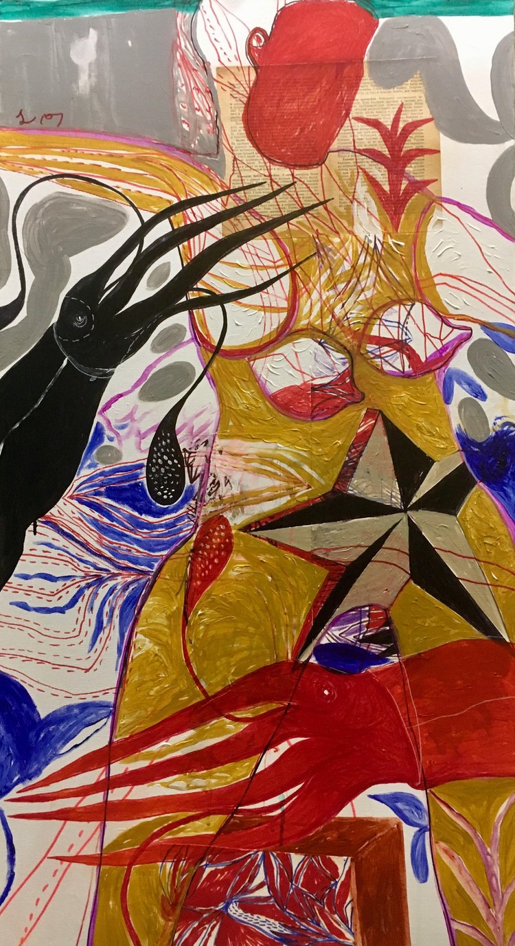 acrylic, mixed media on canvas, 120 x 70 cm