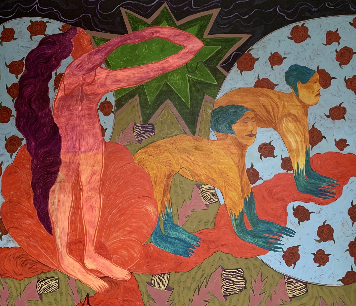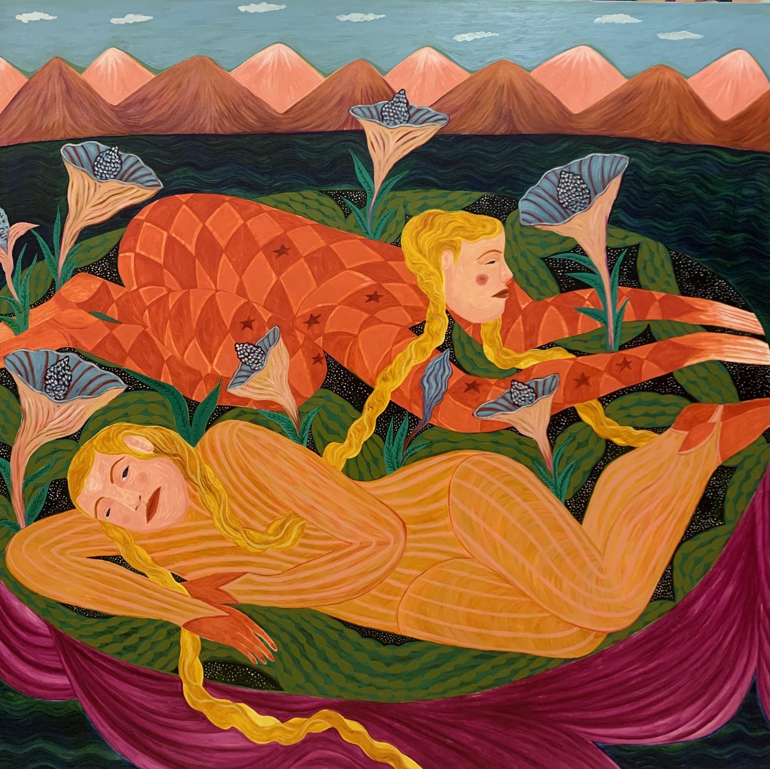 There are recurrent symbols and compositional devices in your paintings such as stars, flowers, and mountain ranges. What is their significance to you? I know you are heavily informed by literary sources—do these symbols originate there or have more personal connotations?