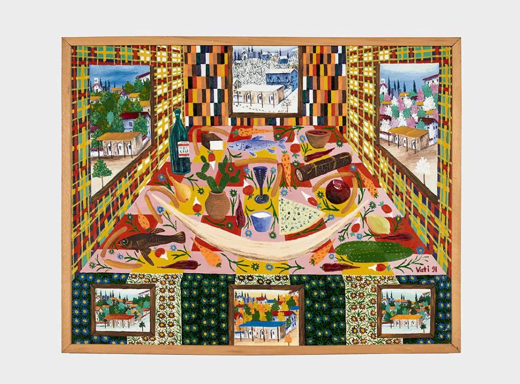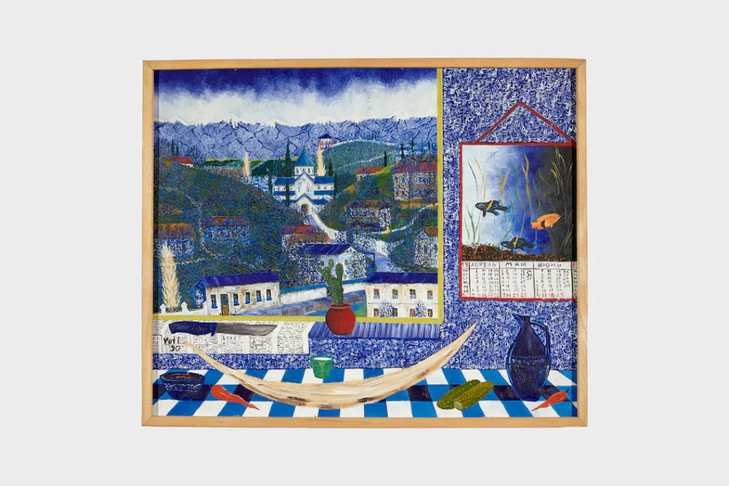 Quote form the film Telavuri Thistles, 1981LC Queisser presents a solo exhibition of Vati (Vakhtang) Davitashvili (1946-2000) co-curated by Thea Gvetadze. Davitashvili was a self-thought, nonconformist artist rarely exhibited outside his home region of Kakheti. Living in Telavi, where he built his studio early on, gave Vati relative freedom from rigid dogmas imposed by official Socialist Realism upon the entirety of cultural production in the Soviet Union. Progressing from more traditional landscapes of his town to more sophisticated structural works in 1990s, he arrived at a completely contemporary mode of presentation. Davitashvili started to present meta-works of other images within one plane, thus providing a sophisticated meaning-making process. While im- ages of churches, landscapes, people, trees, newspapers, and butterflies are fixed geometrically in the background surrounded by abstract patterns, the first objects we see when looking closely are symbolic representations of sustenance – a multiplicity of Kakhetian shoti breads, long and cres- cent-shaped, pointed at both ends, potted plants, sausages, radishes, cu- cumbers, salt shakers, clay jugs with wine. Bread here receives a symbolic function of an offered sustenance while simultaneously becoming an embod- iment of life. Although bread reverberates through Davitashvili’s visual vocabulary, bread loaves are also traceable throughout Georgian art his- tory, including works of Niko Pirosmanashvili (1862-1918) and Vera Pagava (1907-1988). He was closely acquainted with several important artists of his time, who all played a significant role in forming his idiosyncratic painterly lan- guage. Among them was the director Sergei Parajanov (1924-1990), whom the artist met when studying at the Kyiv Aviation Institute to become a pi- lot and who helped Davitashvili to break the perceptional boundaries of the surrounding Communist reality. After returning from Kyiv, Davitashvili started working with Avto Varazi (1926-1977), a major artist in Tbilisi in 1960s and 1970s. He was also in close touch with notable Russian noncon- formist Evgeny Rukhin (1943-1976), organizer of the 1974 Bulldozer Exhi- bition. In Telavi, Davitashvili has mentored several generations of self- taught artists who continue to carry his legacy. The microhistory of Vati Davitashvili underlines several vectors of Geor- gian art history. While telling the story of an outsider, Davitashvili’s legacy connects to the constraints and freedoms available within the Sovi- et system. The artist, connected to his immediate community and the larger regional art scene, has literally and figuratively used Kakhetian architec- tonics, traditionally considered less obvious but more refined, to break the system while working within it.