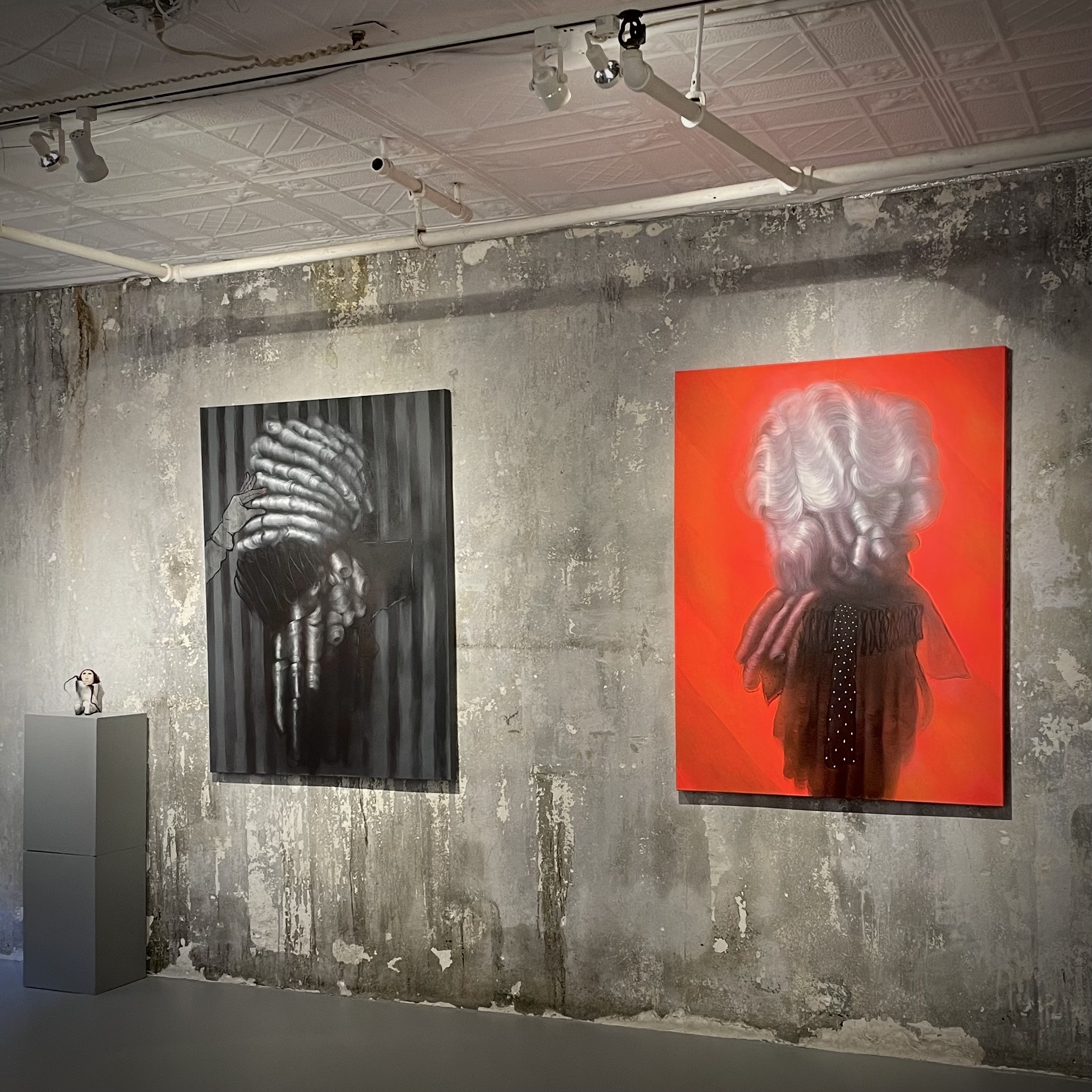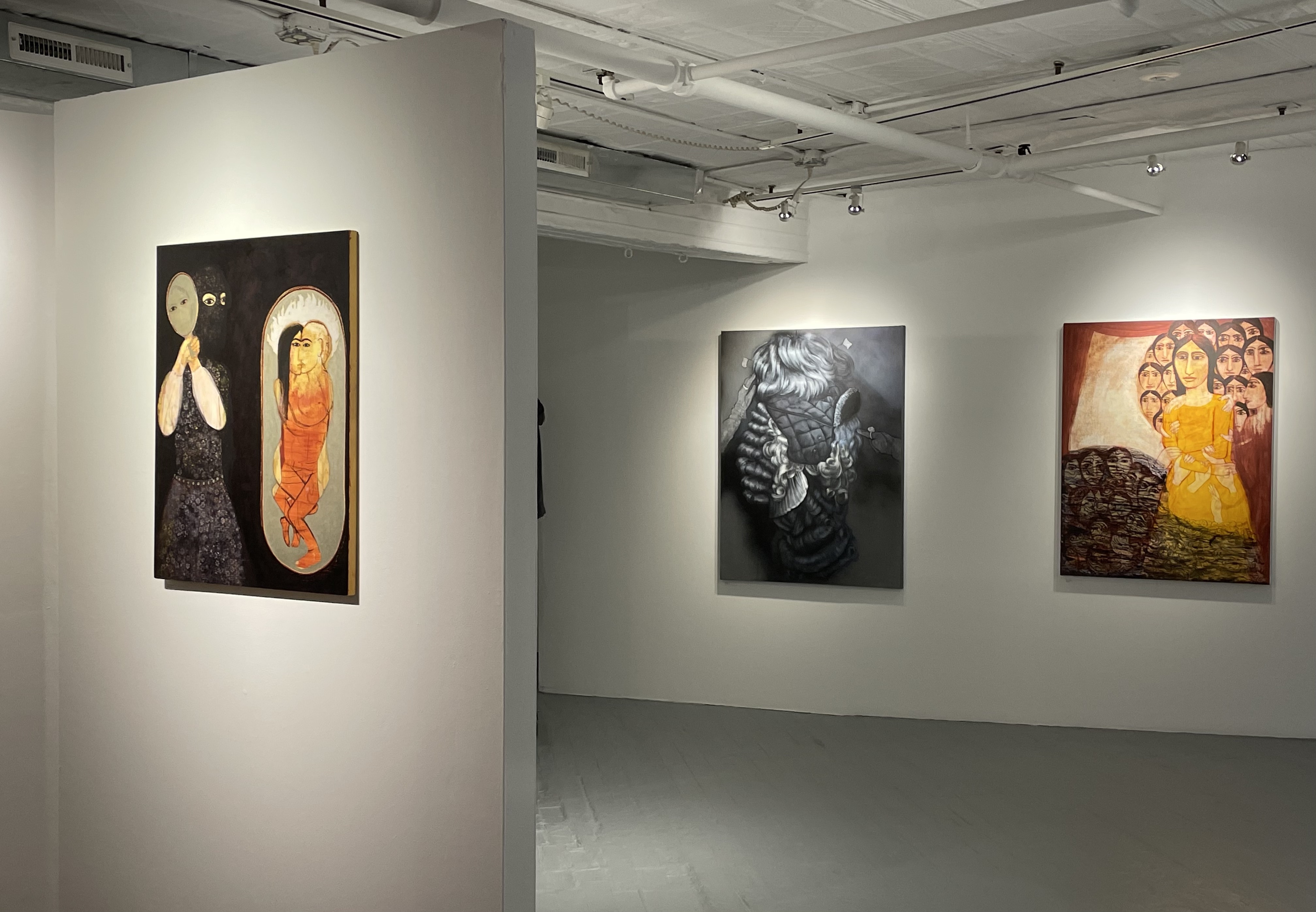“Fou Gallery is a bright, airy space that foreshadows the exhibition’s themes via post-construction partition walls and industrial bricks and pipes. Materials beyond those listed in the exhibition catalog conjoin history with modernity. Fourteen works are intentionally distributed across the moderately sized space, finding placements that halt the viewer, push them back on their heels, and draw them in. This curatorial push and pull allows for a cognitive breath between each piece…. “